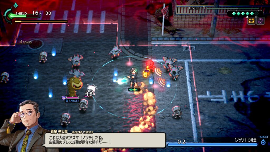 操作キャラと守護霊の攻撃を使い分けて、全方位から大量に迫るミアズマを撃破しよう!