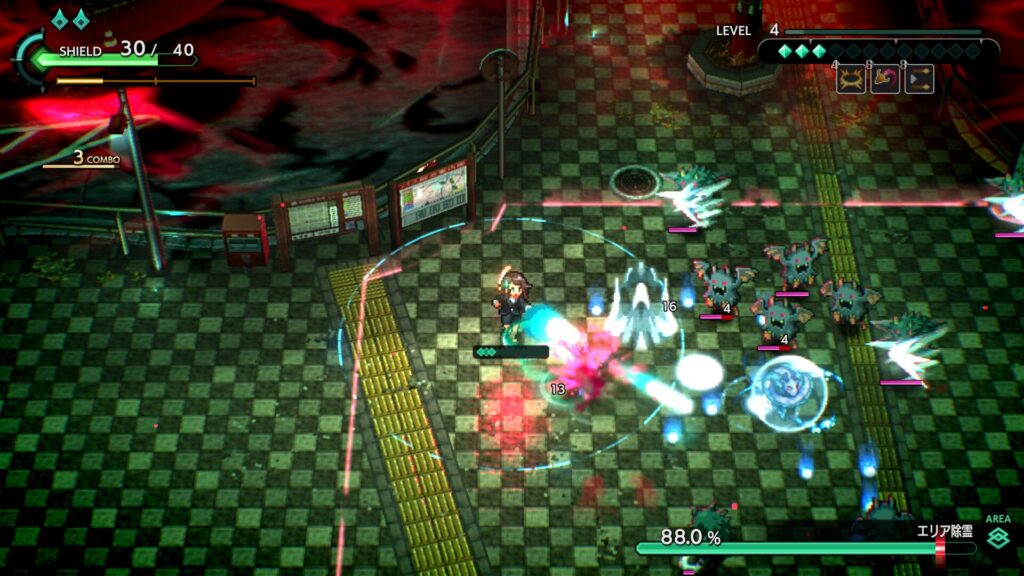 倒したミアズマが落とす魂を除霊することでレベルアップすることができます。