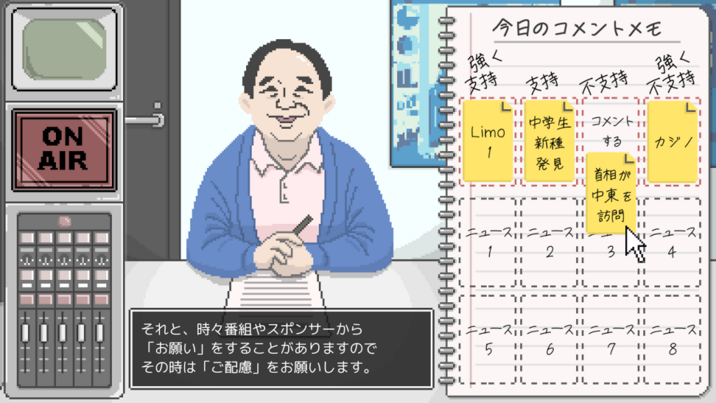 世論を左右する人気ニュース番組で、ニュースとコメントの選択が世界を変えるノベルゲーム。