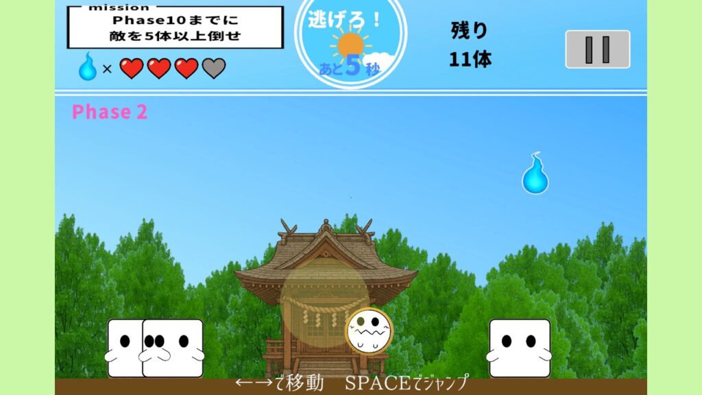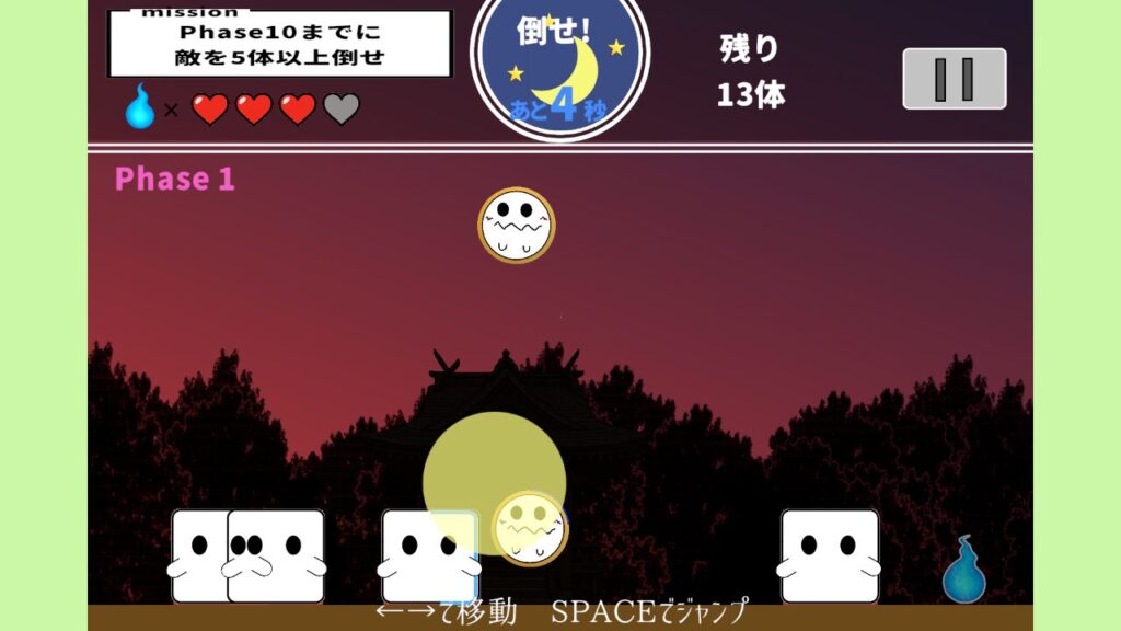 昼と夜が切り替わる世界を舞台にした、岩の封印が取れて飛び出したオバケを狐と一緒に倒していくゆるふわ2Dアクションゲームです。逃げるターンでは人魂を操作して敵をかわし、倒すターンでは狐の持っているお祓いライトでおばけを倒します。神社や住宅街など様々な場所を巡りながら、ステージごとに異なるミッションに挑戦。町をオバケから救い出しましょう。