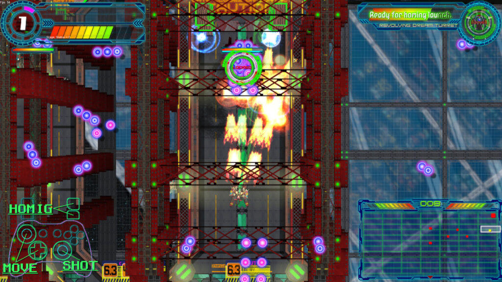 自機はショットとロックオンホーミングミサイルを使用出来ます。