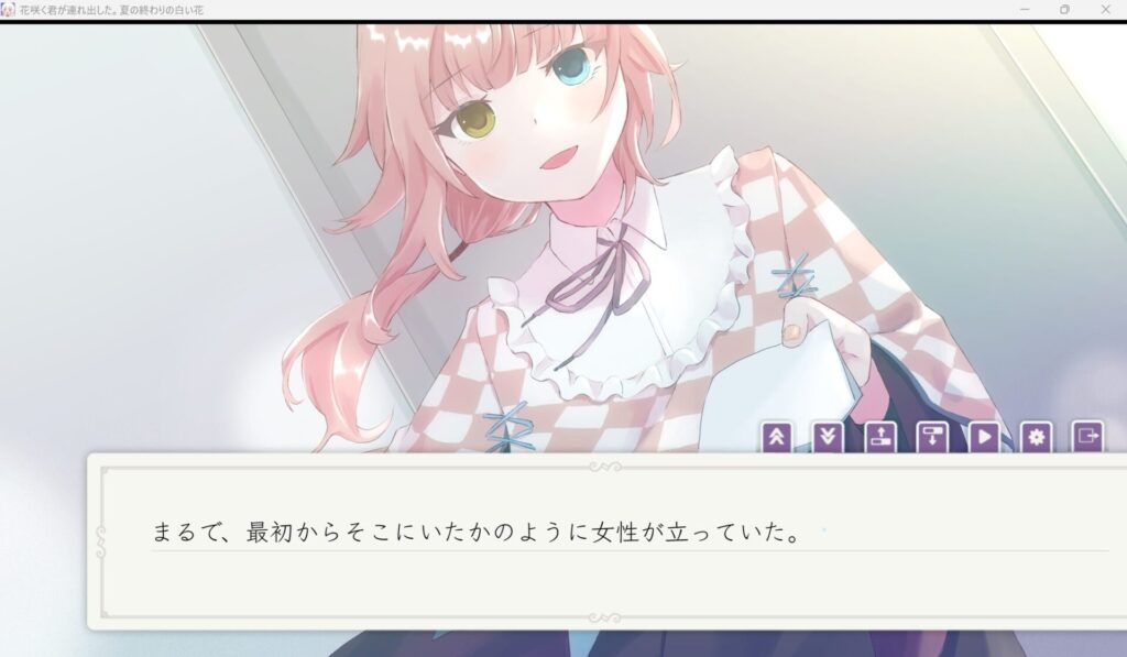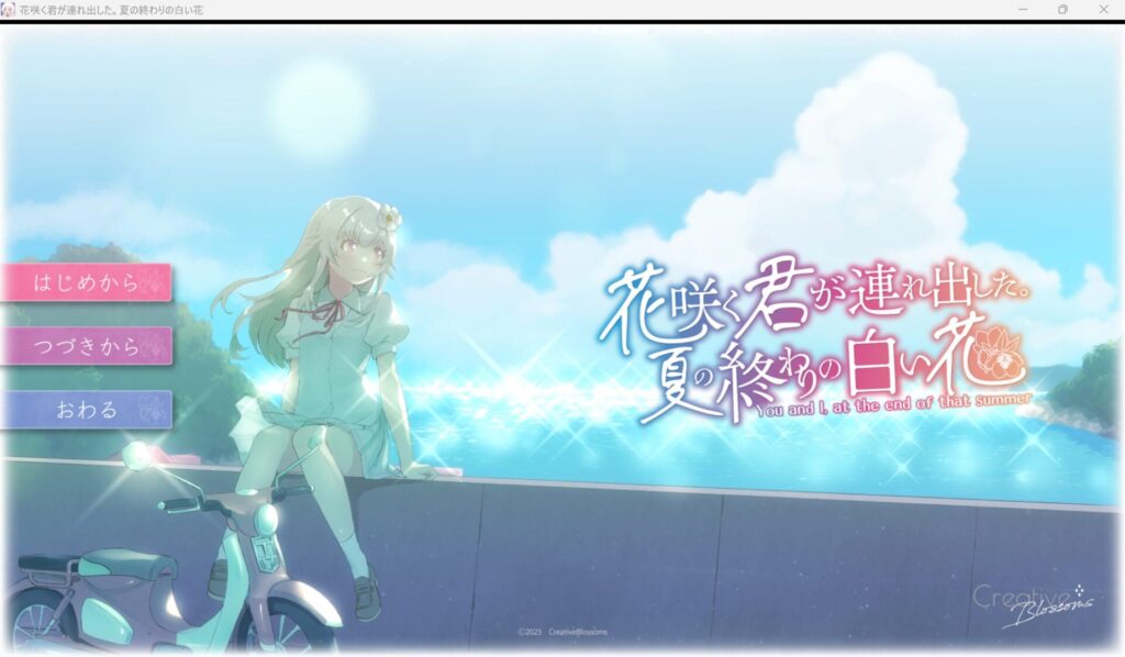 儚さをテーマにした中編ノベルゲーム『花咲く君が連れ出した。夏の終わりの白い花』の試遊体験版を展示します。