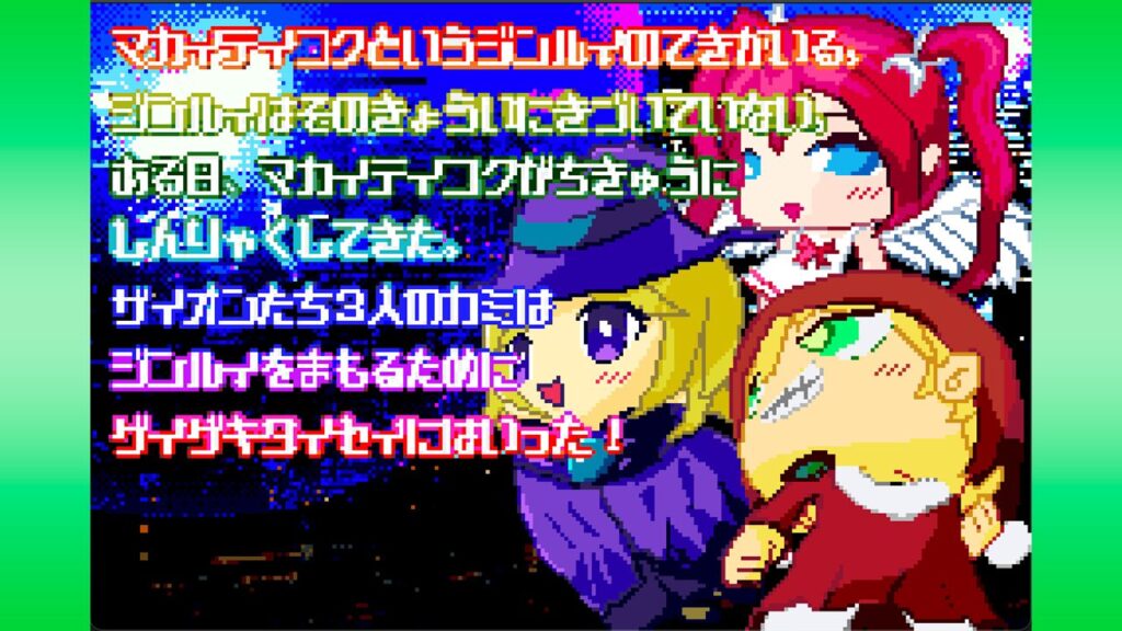 ザイオンたち3人の神は、人類を守るために迎撃体制に入った。個性豊かなショットと必殺のボムで迫り来る敵の軍勢を打ち破れ!