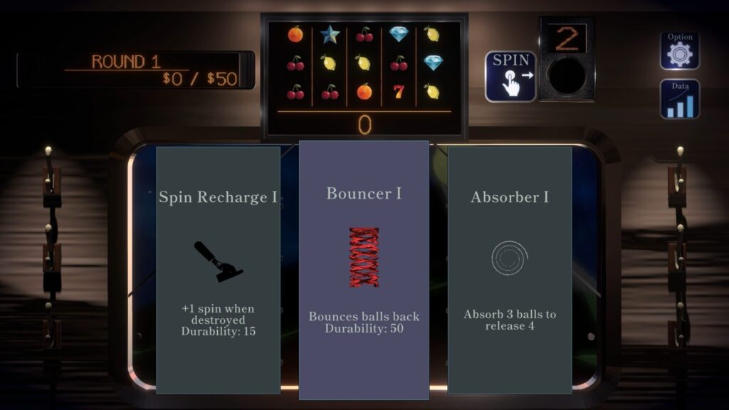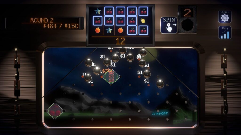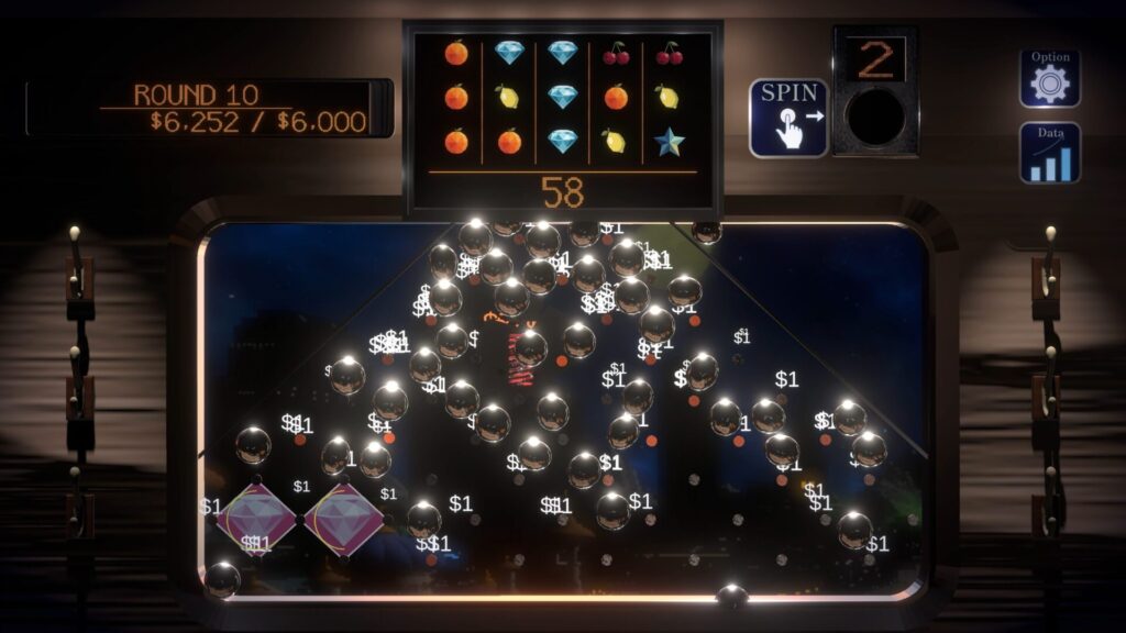 プレイヤーは、パチンコ玉がペグと衝突して得られるスコアをエネルギー源とする列車に乗り、先へと進んでいきます。パチンコ台の上部にはスロットが組み込まれており、その結果によって放出されるパチンコ玉の数が決定。スロットとパチンコの両方に影響を与えるアイテムを選択・配置しながら、提示されるノルマを達成し、一方通行のルートを進行します。